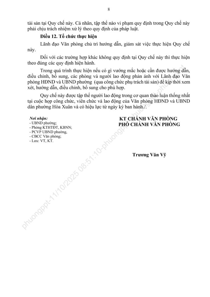 Về việc ban hành Quy chế quản lý, sử dụng tài sản côngcủa Văn phòng HĐND và UBND phường Hòa Xuân