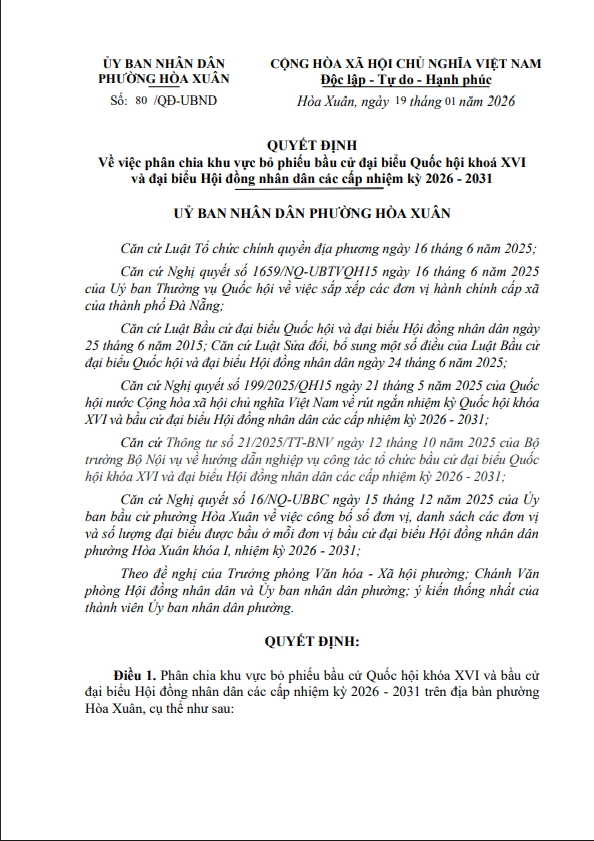 QUYẾT ĐỊNH Về việc phân chia khu vực bỏ phiếu bầu cử đại biểu Quốc hội khoá XVI và đại biểu Hội đồng nhân dân các cấp nhiệm kỳ 2026 – 2031