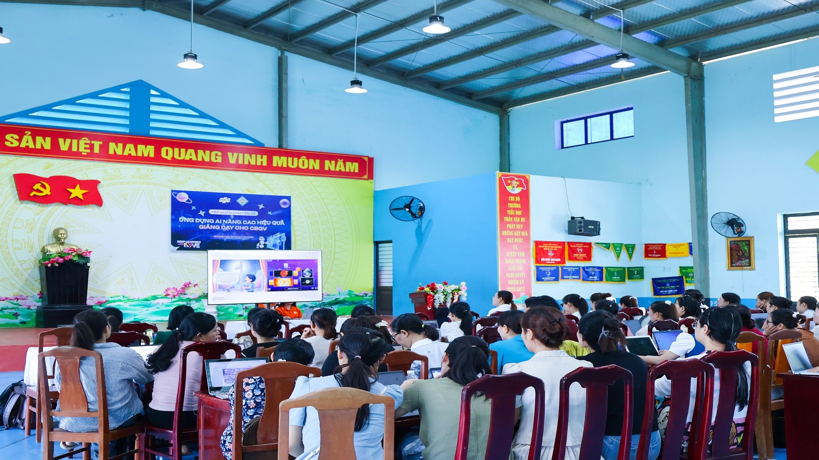 Sáng nay, ngày 20/9, Trường Tiểu học Trần Văn Dư, phường Hòa Xuân tổ chức tập huấn chuyên đề “ứng dụng AI nâng cao hiệu quả giảng dạy cho cán bộ giáo viên nhà trường.